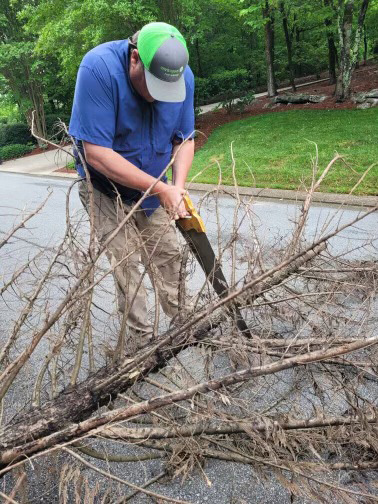 Enviroguard employees on the way to a customer, stopped to help clear fallen trees after recent wind storms in our area.