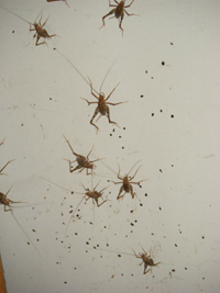 Crickets are occasional invaders. These are insects that spend the majority of their life outdoors often within close proximity to a house, living in mulch, plants, trees or tree stumps, but, on occasion, will invade a dwelling. These invaders may come inside as they are foraging for food and water. Also because an insect’s metabolism slows down considerably during the winter, they seek shelter to escape extreme temperatures. They do not complete their lifecycle indoors.